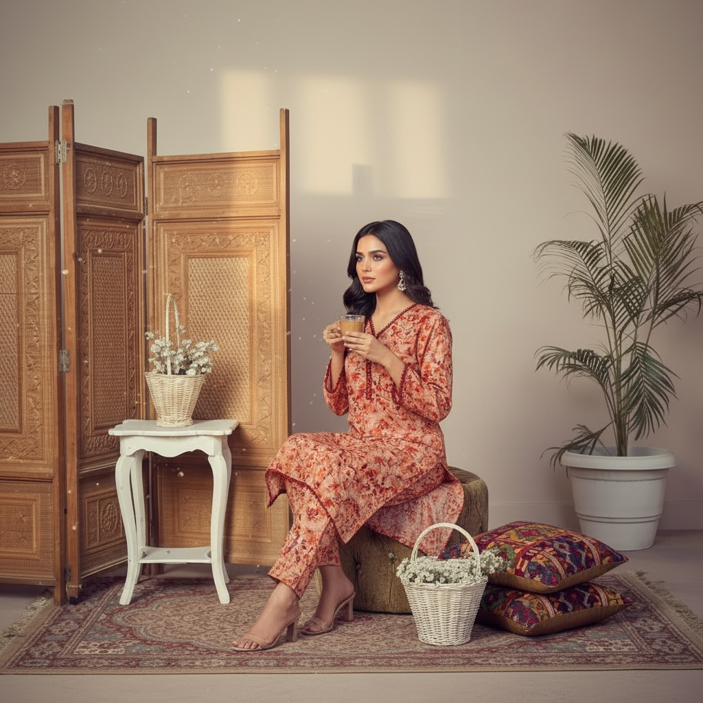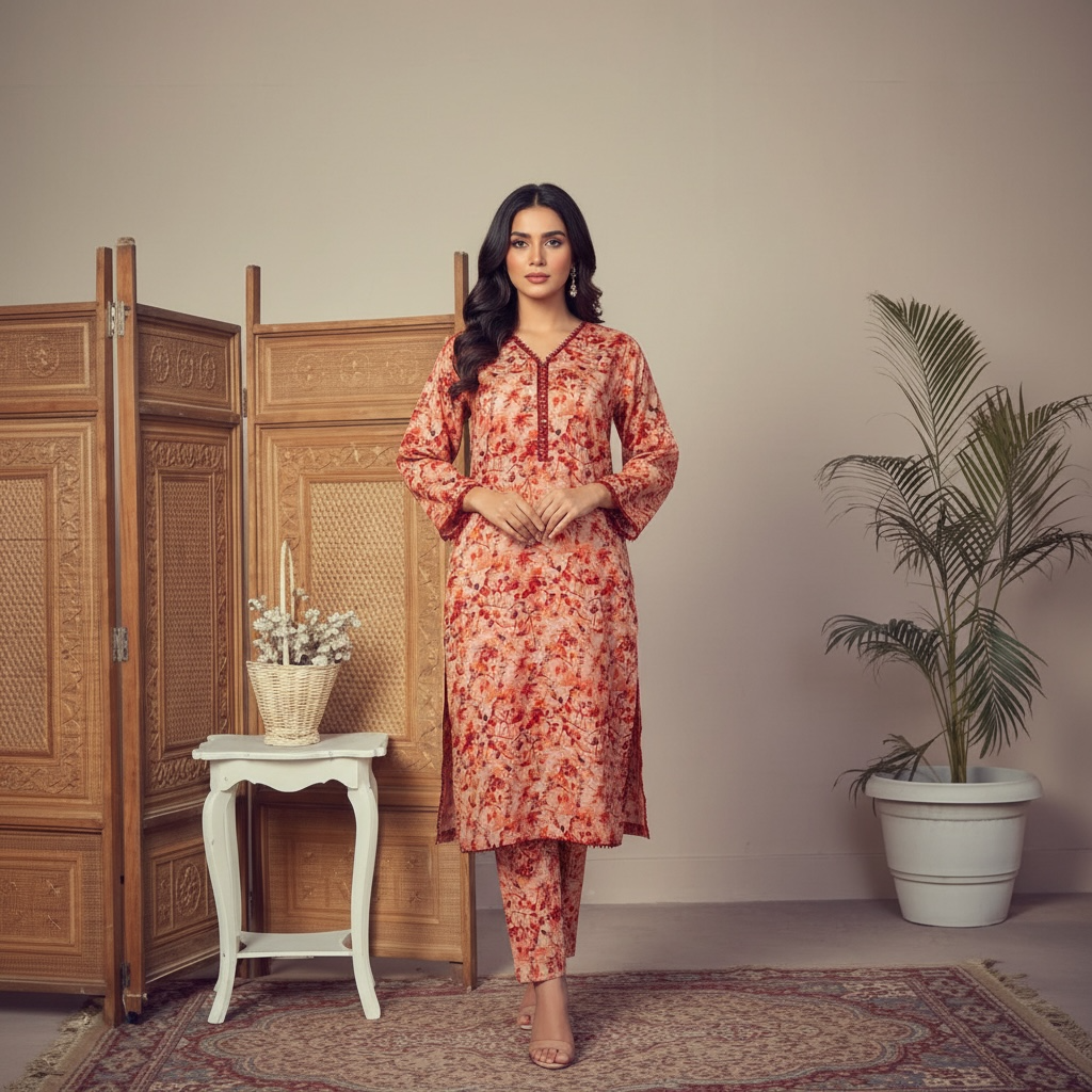 Upgrade your summer wardrobe with this premium 2-Piece Printed Lawn Suit. Crafted from high-quality Bana Dora Lawn, this outfit is incredibly breathable and lightweight, making it perfect for the warm Pakistani climate.